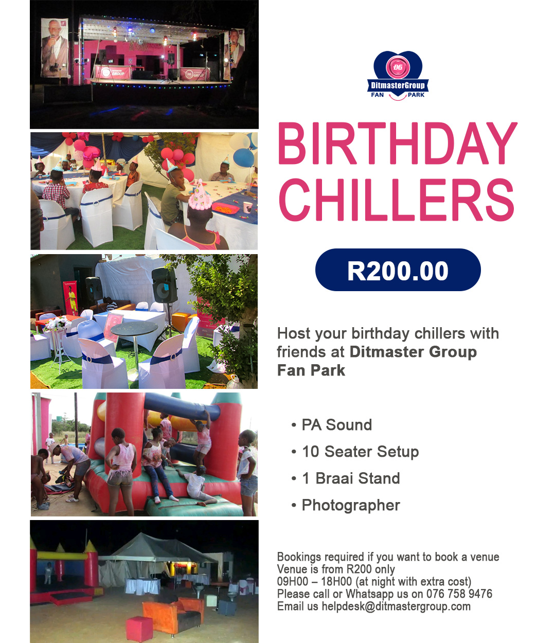 Host your birthday chillers with friends at Ditmaster Group Fan Park ww.ditmastergroup.com